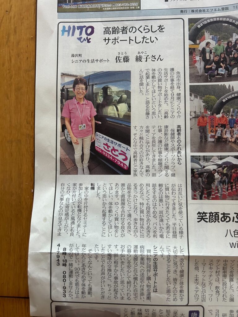 湯沢町のシニア生活サポートとして、私の活動を紹介していただきました。